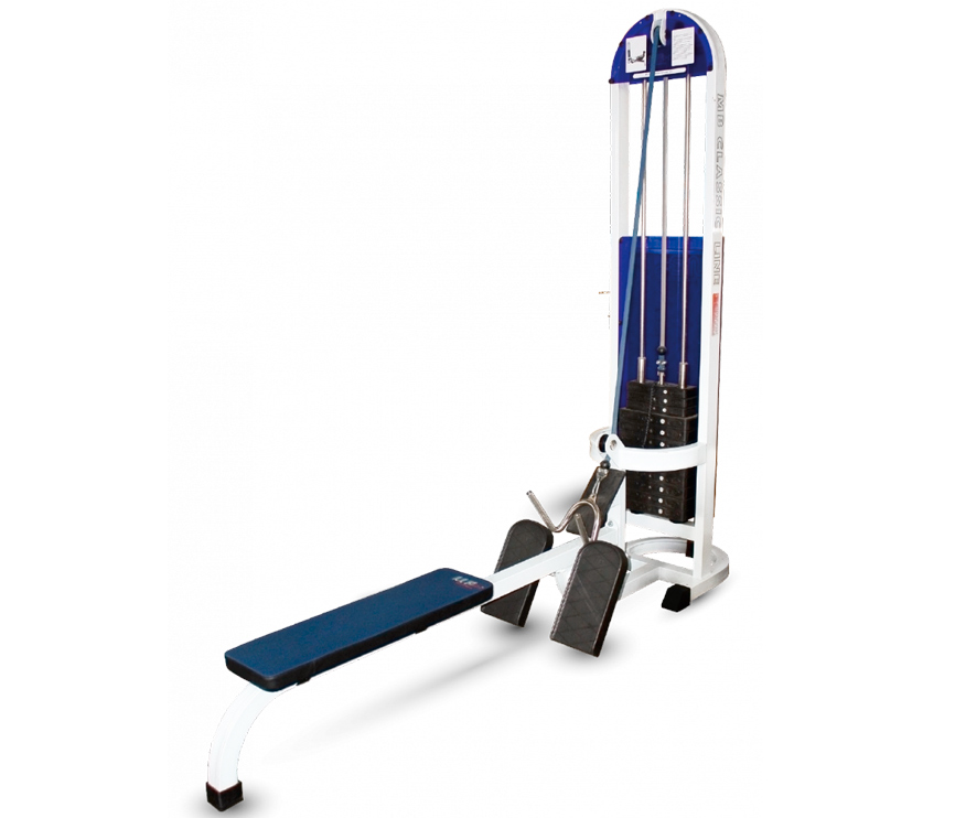 Принцип работы тренажера: горизонтальная тяга к поясу.