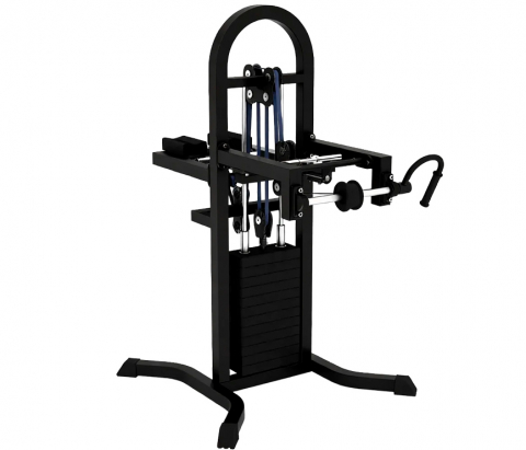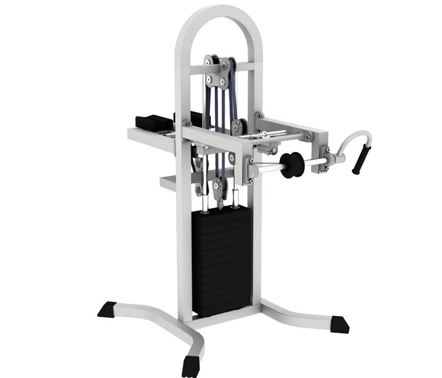 • В качестве утяжелителя используется грузоблок, состоящий из стальных плит покрытых ПВХ, что делает работу на тренажере бесшумной.