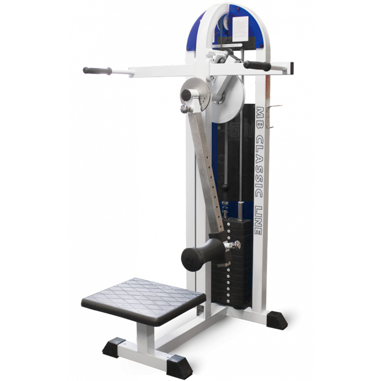 • В качестве утяжелителя используется грузоблок, состоящий из стальных плит, покрытых ПВХ, что делает работу на тренажере бесшумной.