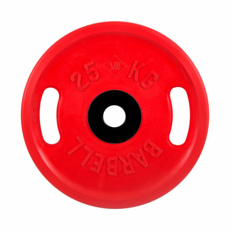 • Диск обрезиненный, цветной, евро - классик с ручками, 25 кг MB Barbell MB-PltCS-25