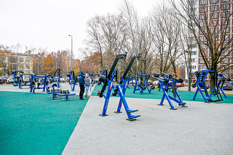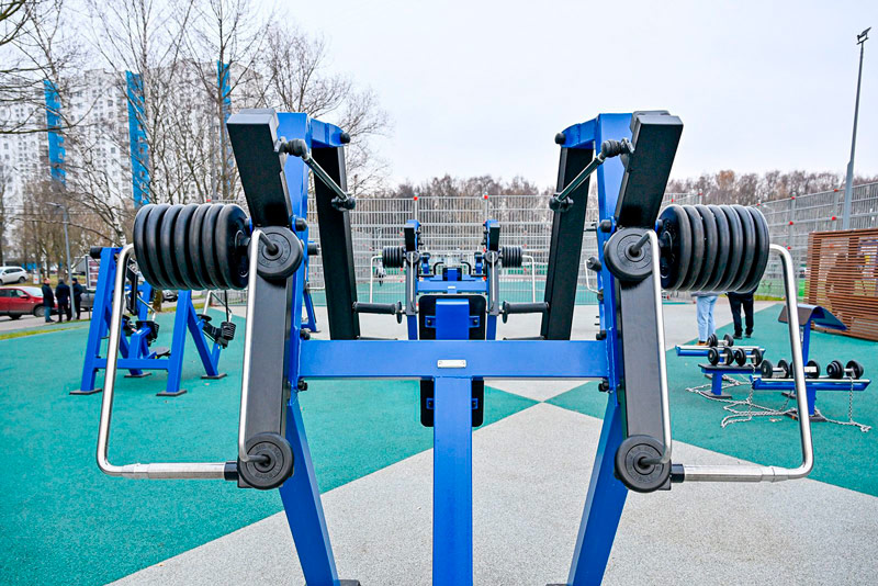 На площадке установлены 20 тренажеров с изменяемой нагрузкой, включая тренажеры StreetBarbell+ для атлетов-колясочников.