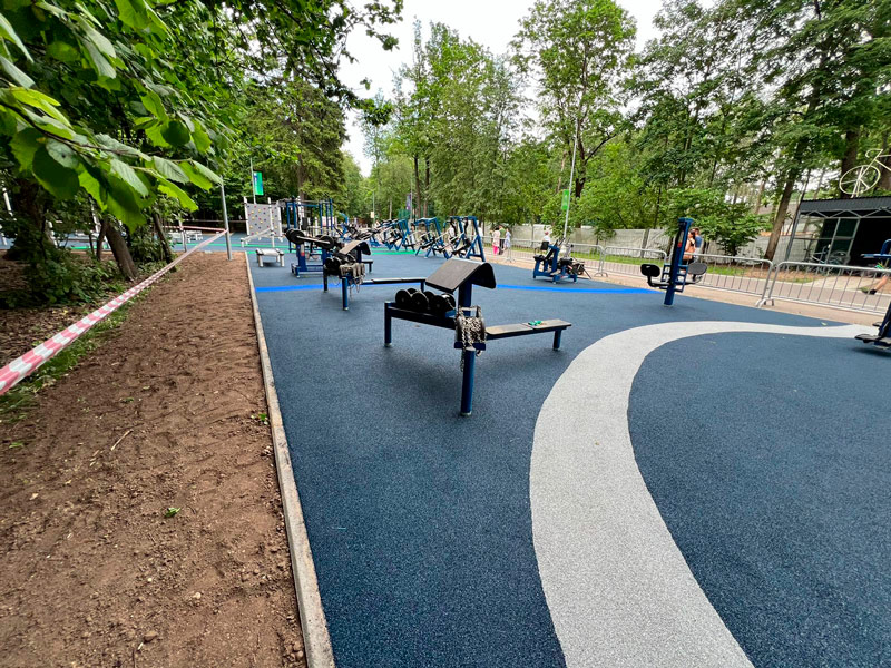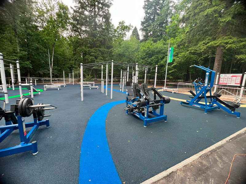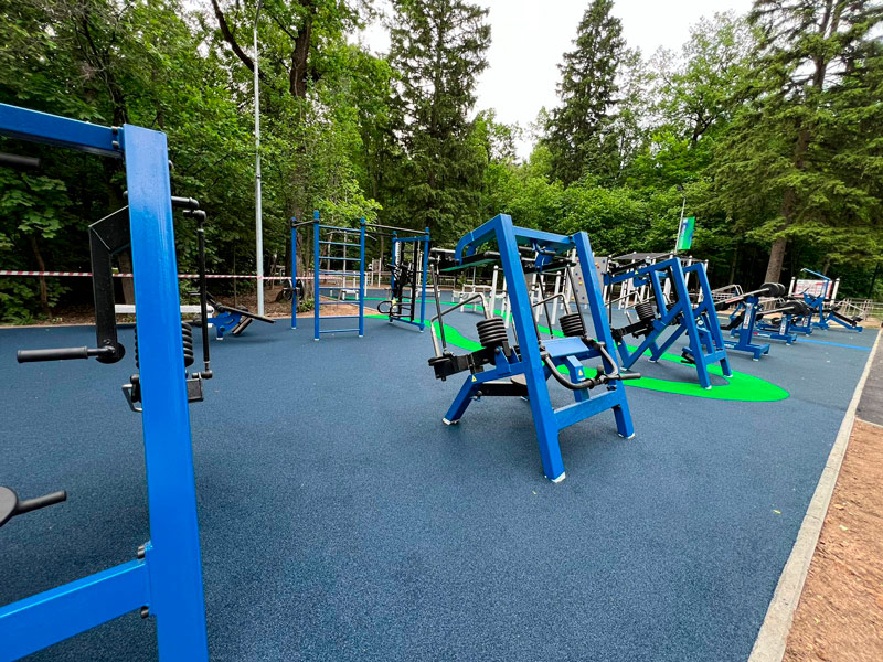 Площадка оснащена уличными тренажерами MB Barbell, которые представляют возможности профессионального силового тренинга на открытом воздухе для любого атлетического уровня.