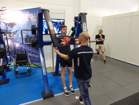Организаторами стенда с нашими тренажерами стали немецкие партнеры «Outdoor-Kraftsport», которые не только доставили оборудование, но и создали для них яркую презентацию и красочное оформление. Берлинская публика с восторгом и интересом встретила новинку. Особенно удивила зрителей линейка StreetBarbell+ (открытые для спортсменов с ограничениями по здоровью): ребята прямо на колясках жали вес на тренажере «Трицепс сидя с изменяемой нагрузкой» MB 7.42.3!