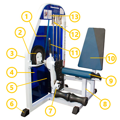 | 6. Резиновые подпятники для высокой устойчивости тренажеров | 13. Табличка с инструкциями по применению |