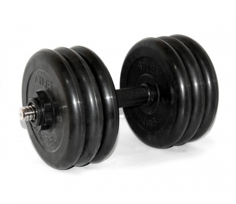 Гантель разборная с обрезиненными дисками «Атлет» и стальным грифом с обрезиненной ручкой. Общий вес 32 кг.