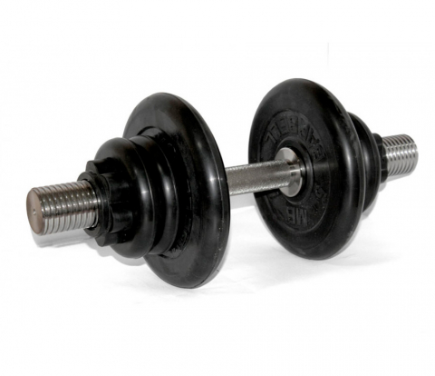Гантель разборная с обрезиненными дисками «Стандарт» и стальным грифом с хромированной вращающейся ручкой. Общий вес 21 кг.