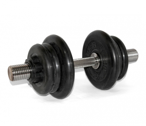 Гантель разборная с обрезиненными дисками «Стандарт» и стальным грифом с хромированной вращающейся ручкой. Общий вес 26,5 кг.