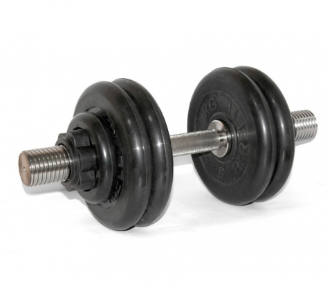 Гантель разборная с обрезиненными дисками «Стандарт» и стальным грифом с хромированной вращающейся ручкой. Общий вес 29 кг.