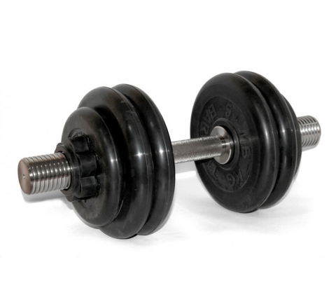 Гантель разборная с обрезиненными дисками «Стандарт» и стальным грифом с хромированной вращающейся ручкой. Общий вес 36,5 кг.