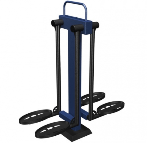 Тренажер предназначен для создания кардионагрузки, разминки, развития мышц ног. Два человека могут заниматься одновременно. Упражнение: разведение ног.